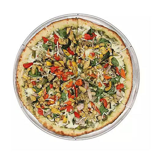 Basil Pesto, Shredded Italian Cheese Blend, Grilled Vegetables, Spinnach, Garlic, Mushrooms. 530 cal per slice.Product Number: 212153000008